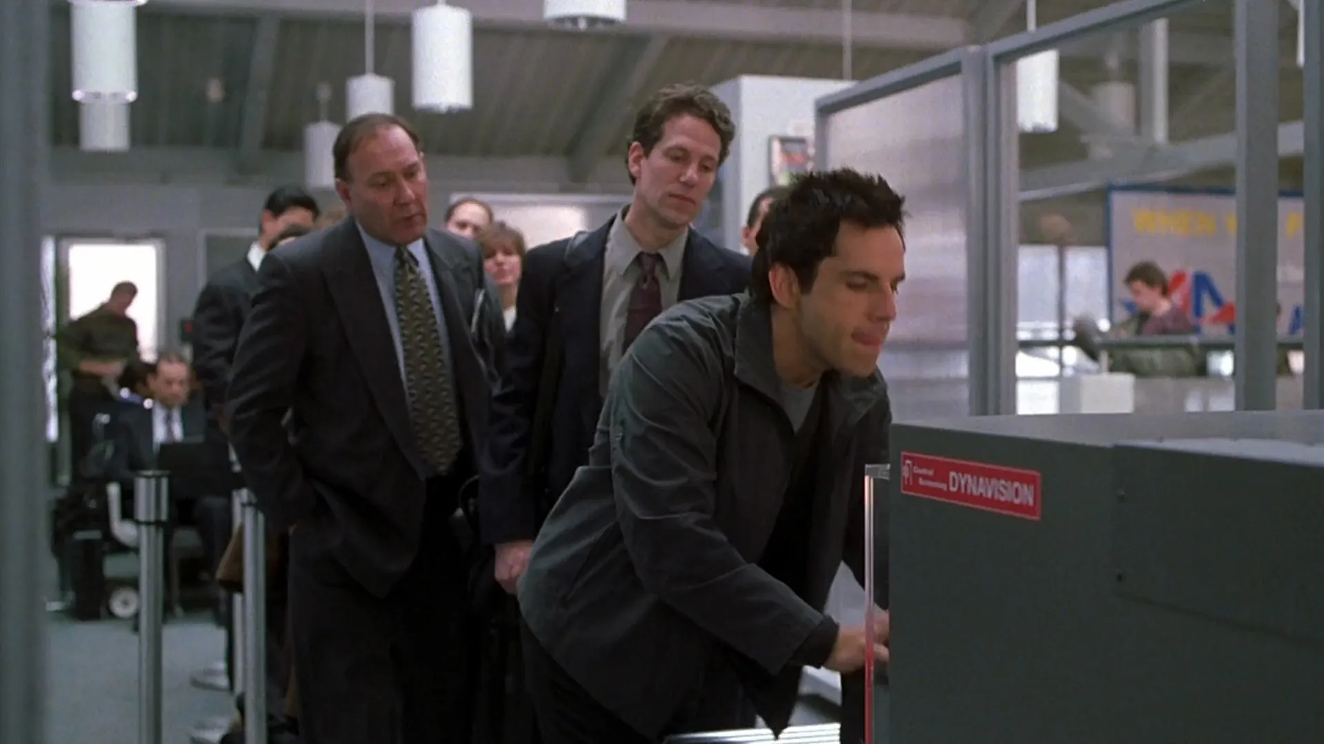 Cast: Ben Stiller as Gaylord 'Greg' Focker, Robert De Niro as Jack Byrnes, Teri Polo as Pam Byrnes, Blythe Danner as Dina Byrnes, Nicole DeHuff as Deborah Byrnes, Jon Abrahams as Denny Byrnes, Owen Wilson as Kevin Rawley, James Rebhorn as Dr. Larry Banks, Tom McCarthy as Dr. Bob Banks, Phyllis George as Linda Banks, Kali Rocha as Atlantic American Flight Attendant, Bernie Sheredy as Norm the Interrogator, Judah Friedlander as Pharmacy Clerk, Peter Bartlett as Animal Shelter Worker, John Elsen as Chicago Airport Security, Mark Hammer as Greg's Hospital Patient, Amy Hohn as Ticket Agent, William Severs as Father O'Boyle, John Fiore as Kinky, Marilyn Dobrin as Atlantic American Lost Luggage Clerk, Marci Reid as Traveler, Frank Santorelli as Courier (Wrong Bag), Russell Hornsby as Late Night Courier (Right Bag), Patricia Cook as Little Girl, Cody Arens as Little Boy, Cole Hawkins as Little Boy, Spencer Breslin as Little Boy, Ina Rosenthal as Wedding Worker, Kim Rideout as Nurse, Kresh Novakovic as Airport Policeman, John Joseph Gallagher as Cop, G. A. Aguilar as Cop, Lynn Ann Castle as Security Guard